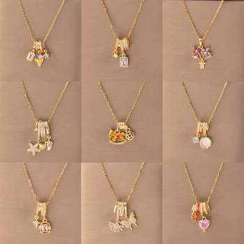 In acciaio inox 18K oro cuore farfalla stella Multi ciondolo collana zircone belle donne collane moda gioielli natale