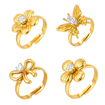 Anelli in oro placcato zircone in acciaio inossidabile da donna placcato 18K placcato in stile minimalista fiocco con nodo a farfalla anello aperto gioiello impermeabile