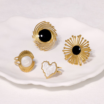 Anillo Abierto de Acero Inoxidable Exagerado de Moda para Mujer, Chapado en Oro de 18k, Anillos Grandes con Forma de Corazón, Flor y Estrella, Joyería Ajustable para el Dedo