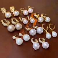 Thời Trang Sang Trọng S925 Bạc Kim Vàng Thật Mạ Ngọc Trai Zircon Hoop Thả Bông Tai Phụ Nữ Sáng Bóng CZ Lá Dangle Bông Tai Đối Với Quà Tặng
