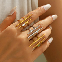 New Phóng Đại Thép Không Gỉ 18K Mạ Vàng Nhẫn Phụ Nữ Đôi Dòng Hình Học Zircon Mở Vòng Đồ Trang Sức Thời Trang Không Thấm Nước